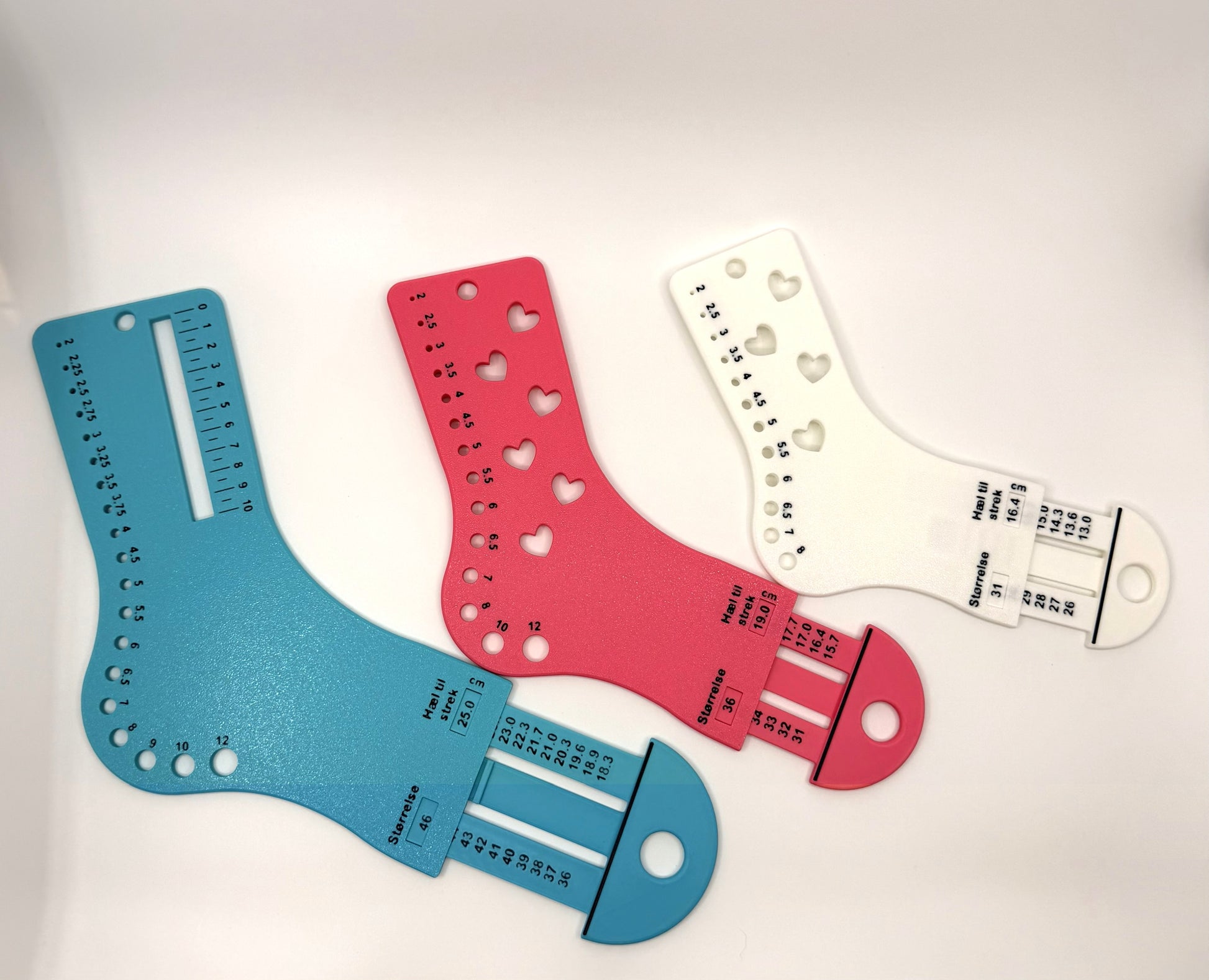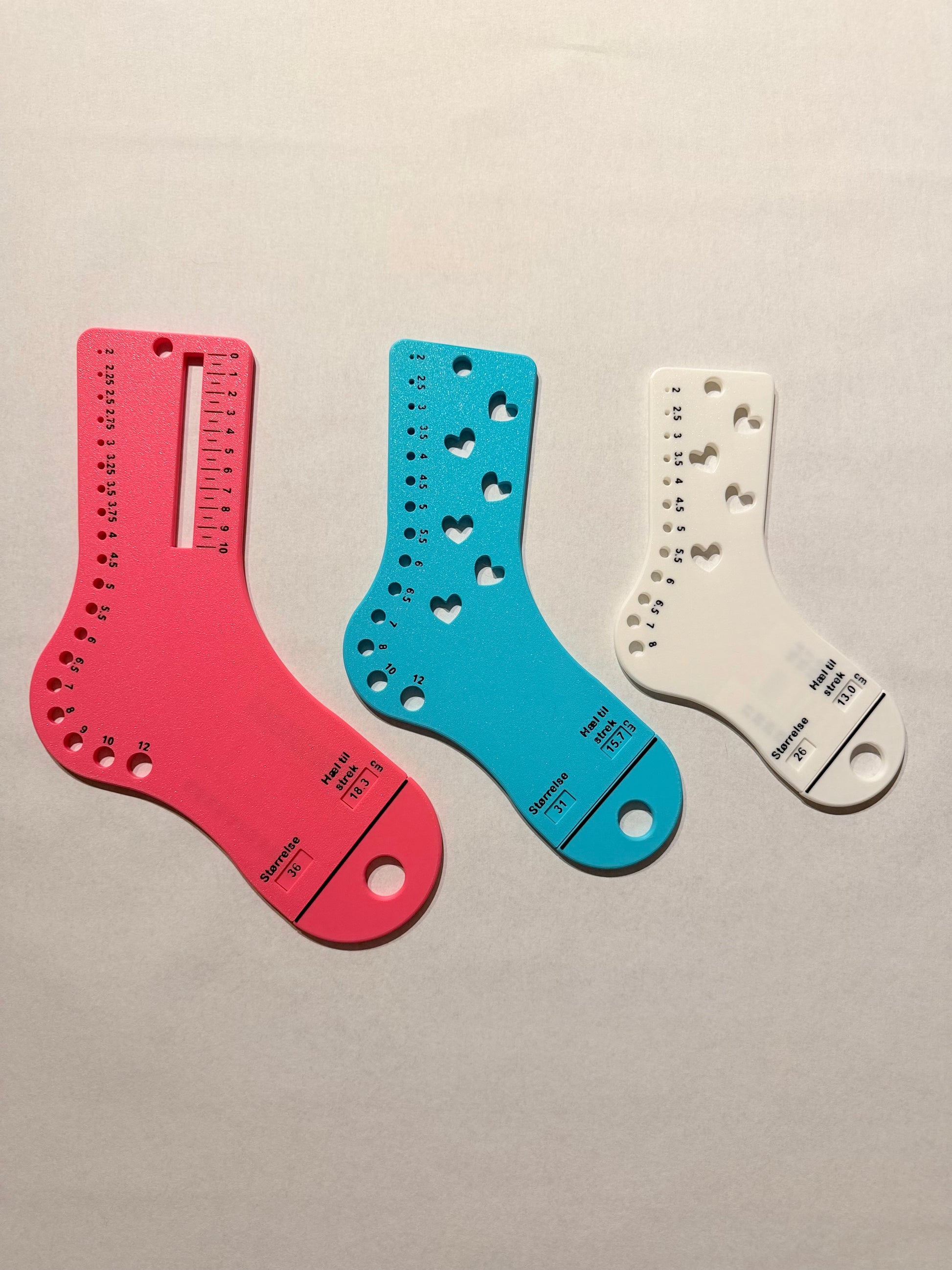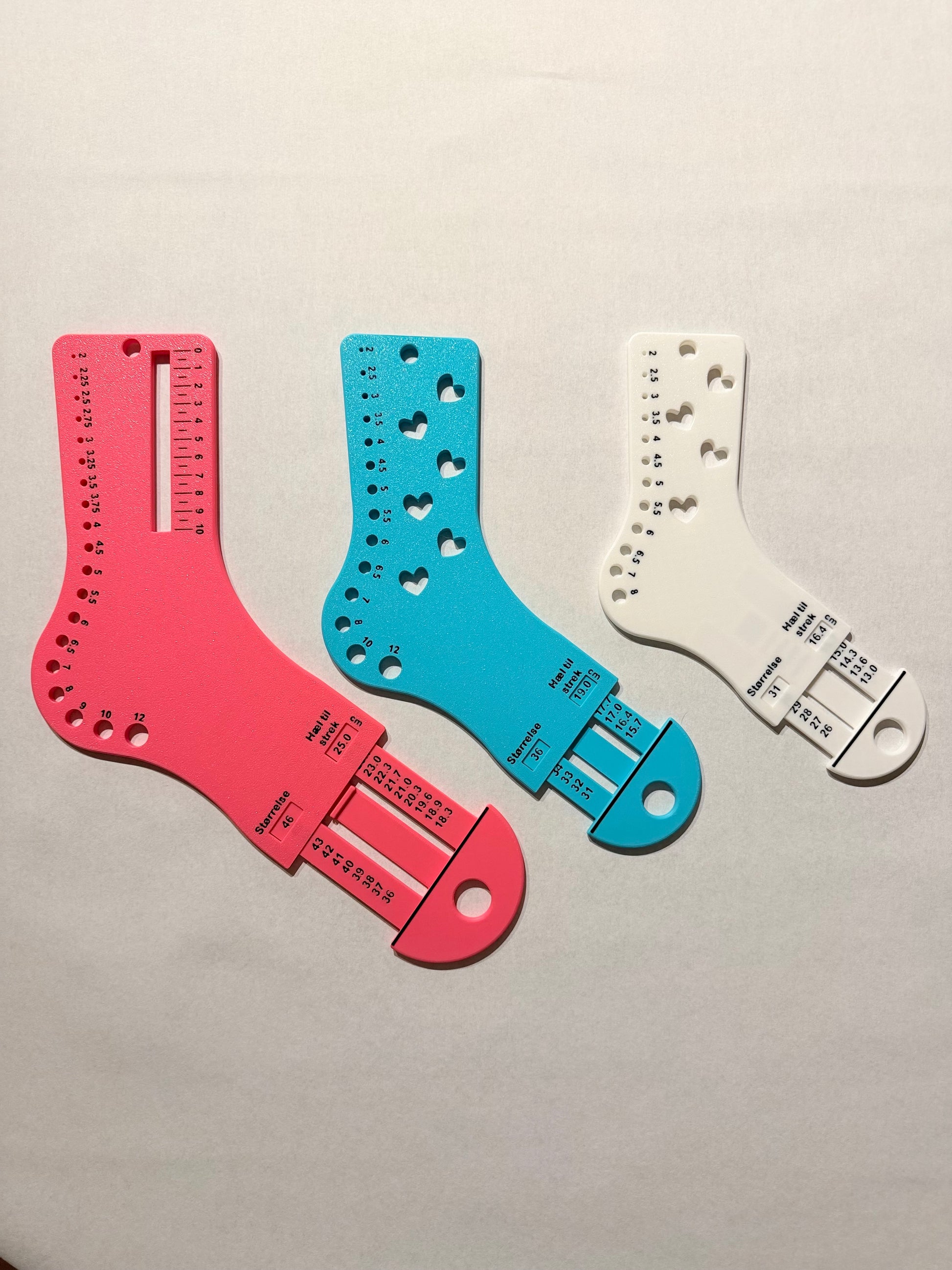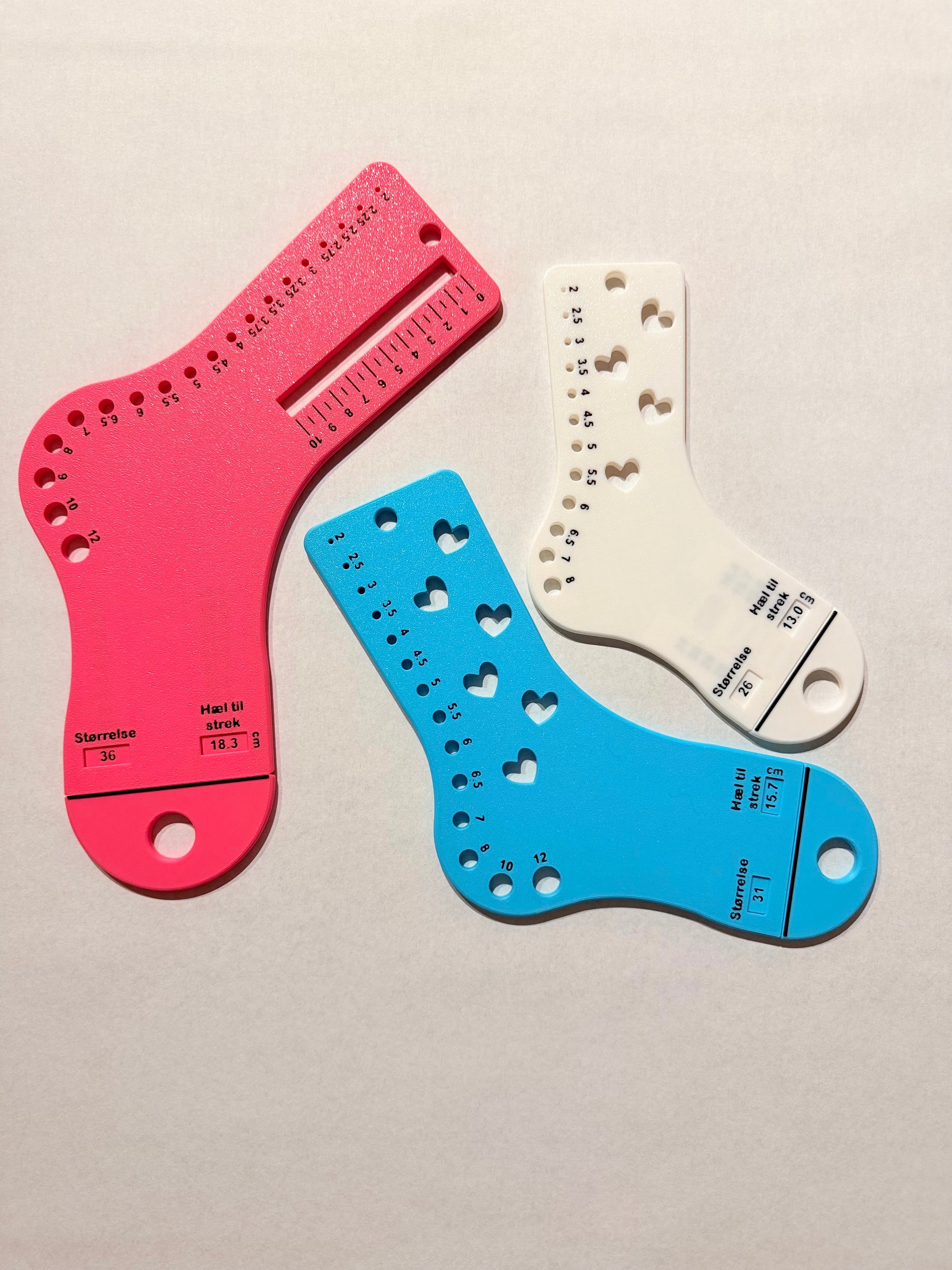 Gjør sokkestrikkingen enklere og mer presis med vår justerbare 3D-printede sokkeblokker! Dette innovative multiverktøyet erstatter behovet for flere sokkeblokkere og gir deg mange funksjoner i ett produkt – perfekt for både måling, blokkering og kontroll av strikkeprosjekter.