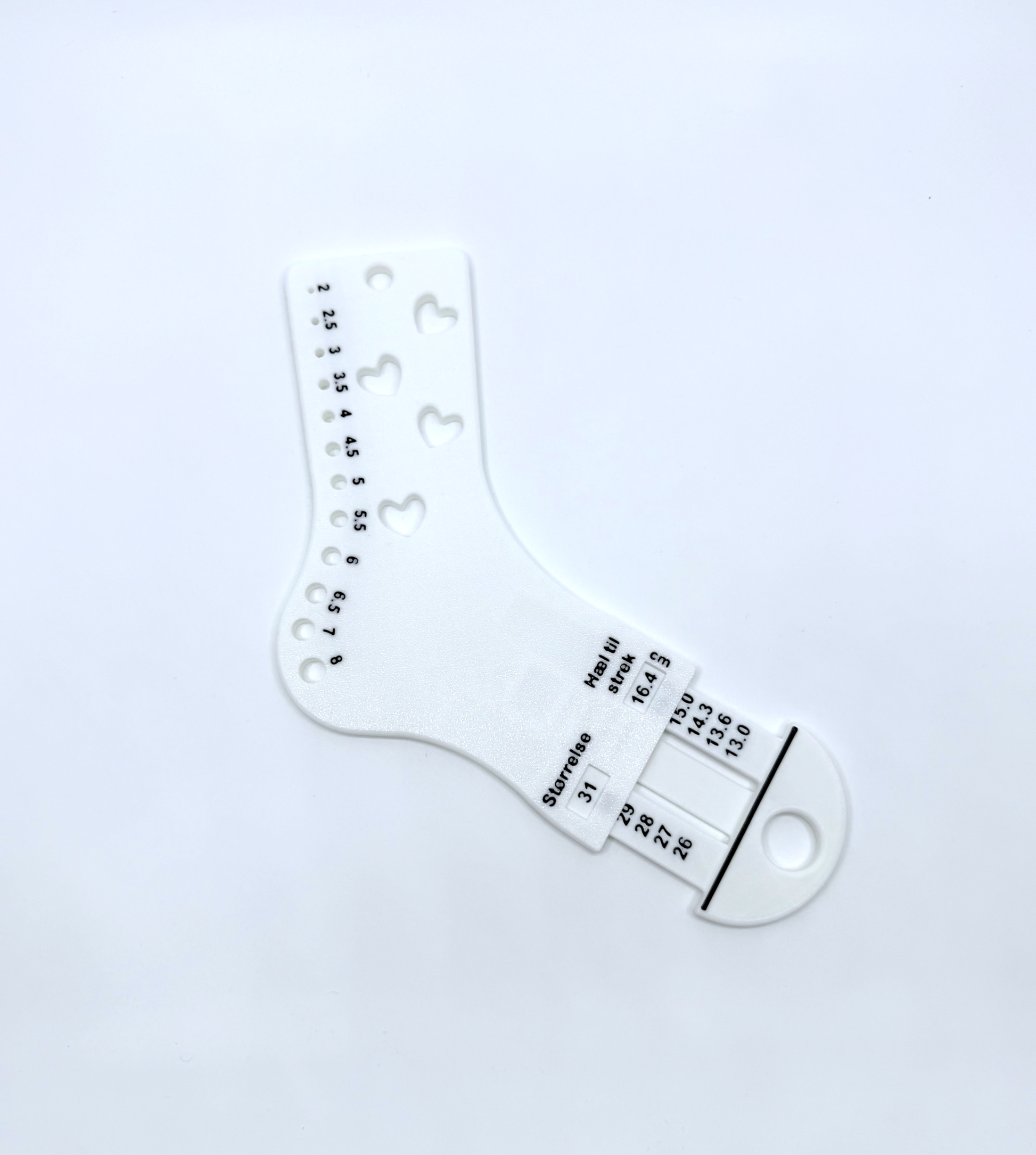 Med denne smarte og plassbesparende løsningen får du alt du trenger i ett produkt! Den gir deg perfekt form på sokkene, nøyaktige målinger og full kontroll over prosjektet ditt – uansett størrelse.
