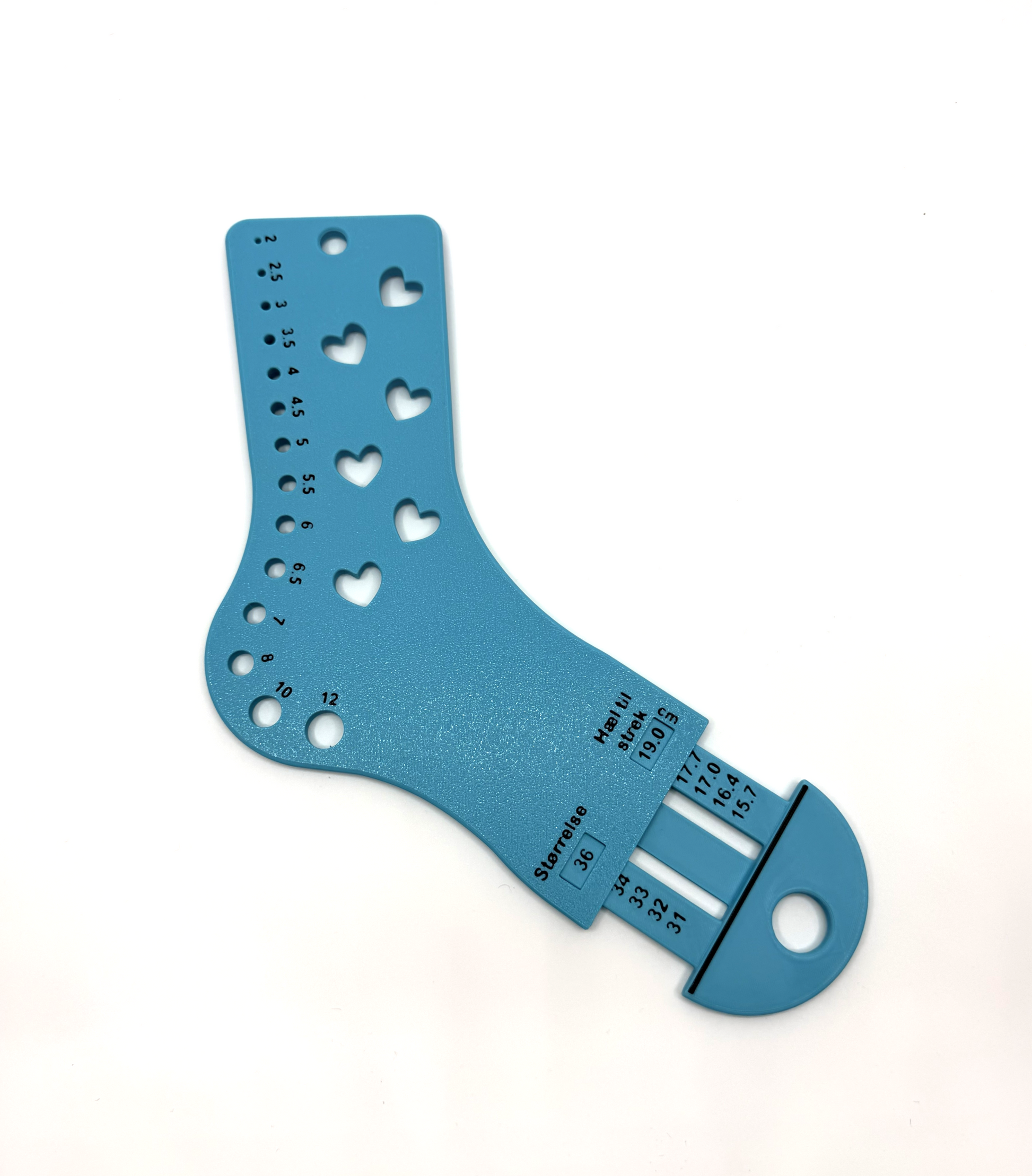 Gjør sokkestrikkingen enklere og mer presis med vår justerbare 3D-printede sokkeblokker! Dette innovative multiverktøyet erstatter behovet for flere sokkeblokkere og gir deg mange funksjoner i ett produkt – perfekt for både måling, blokkering og kontroll av strikkeprosjekter.